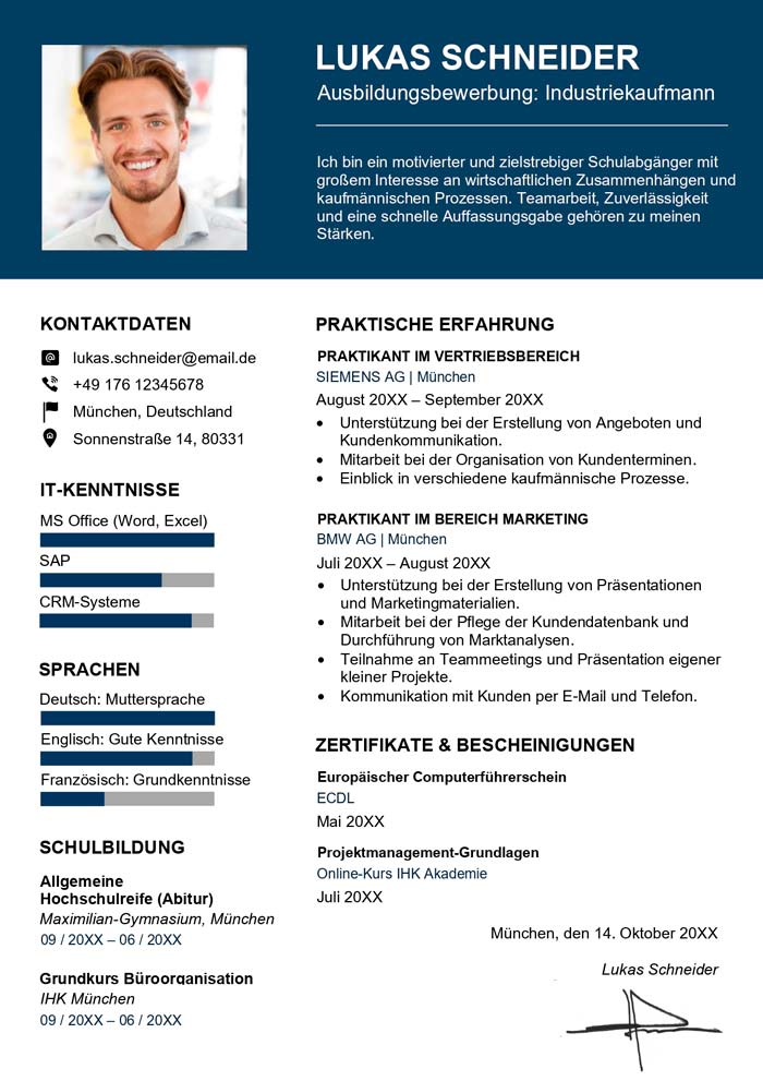 Lebenslauf Ausbildung : Beispiel und Word-Vorlage zum Ausfüllen