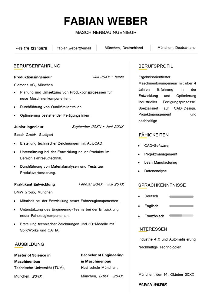 Professionelle Lebenslauf-Vorlage ohne Bild kostenlos nutzen