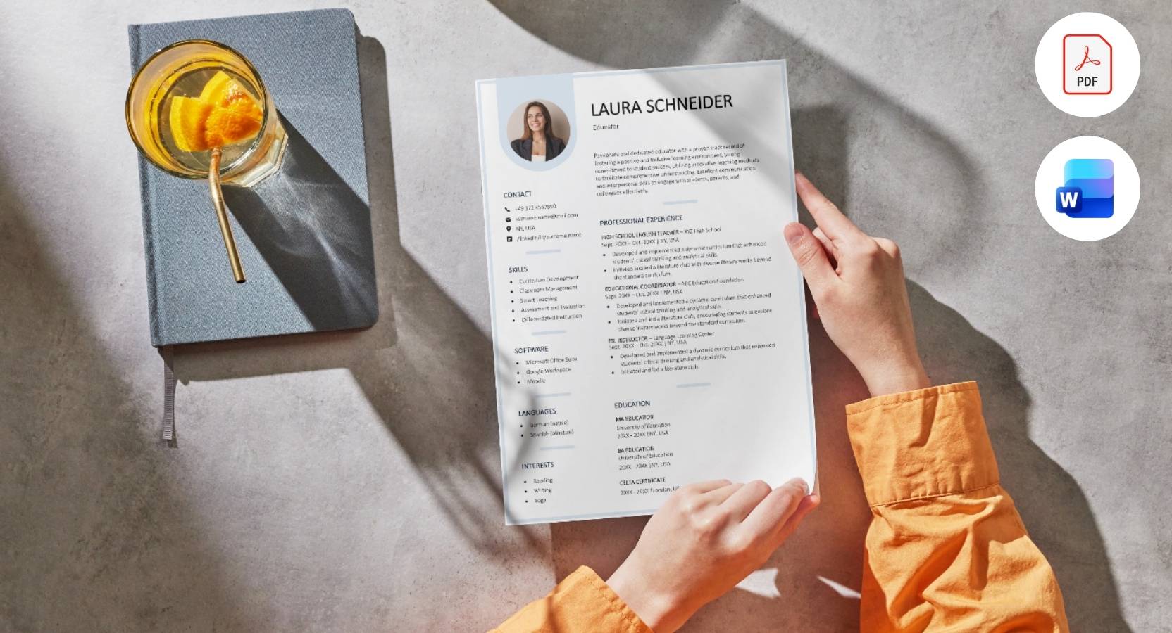 Unserer Meinung nach ist das beste Format für einen Lebenslauf das PDF-Dokument. Dennoch sind einige Personaler nicht auf einen PDF-Lebenslauf eingestellt und bevorzugen Word. Daher empfehlen wir, den Lebenslauf in beiden Formaten zu erstellen.